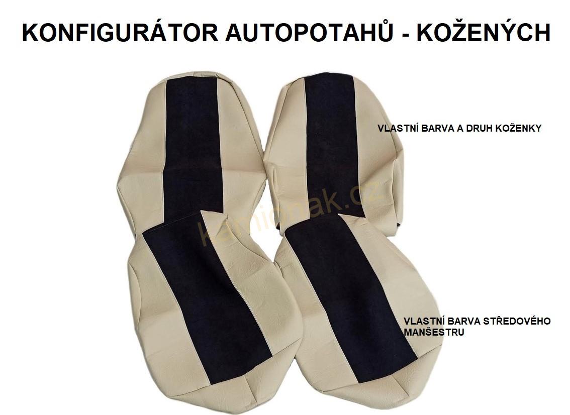 - Barvu a druh koženky-okraje (dle vzorníku vyberte z jakého druhua a barvy koženky budou Váše potahy vyrobeny)