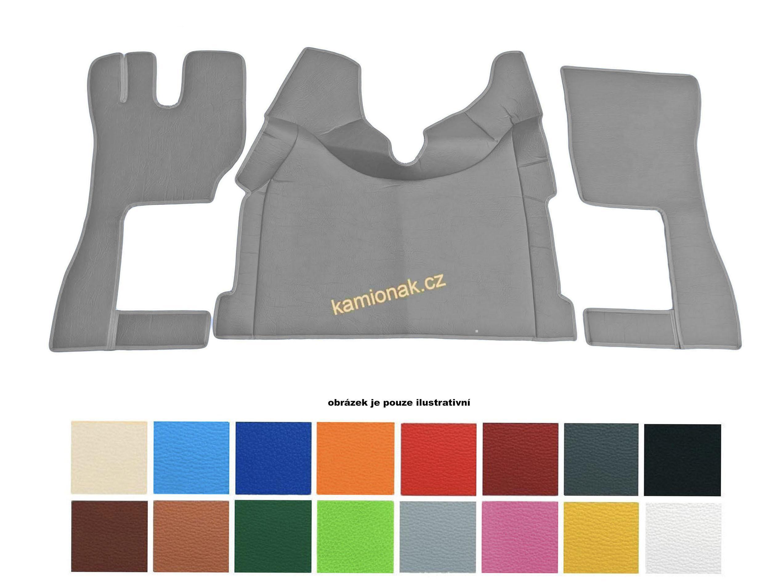 Autokoberec koženkový pro MAN TGX - automat, 1kastlík (č.42) bude vyroben z Vámi zadaných parametrů, pomocí 3 kroků můžete zvolit vlastní autokoberec a mít tak jedinečný design co se týče barvy koženky, barevnosti krajového lemování a případnou možnost výšivky.
