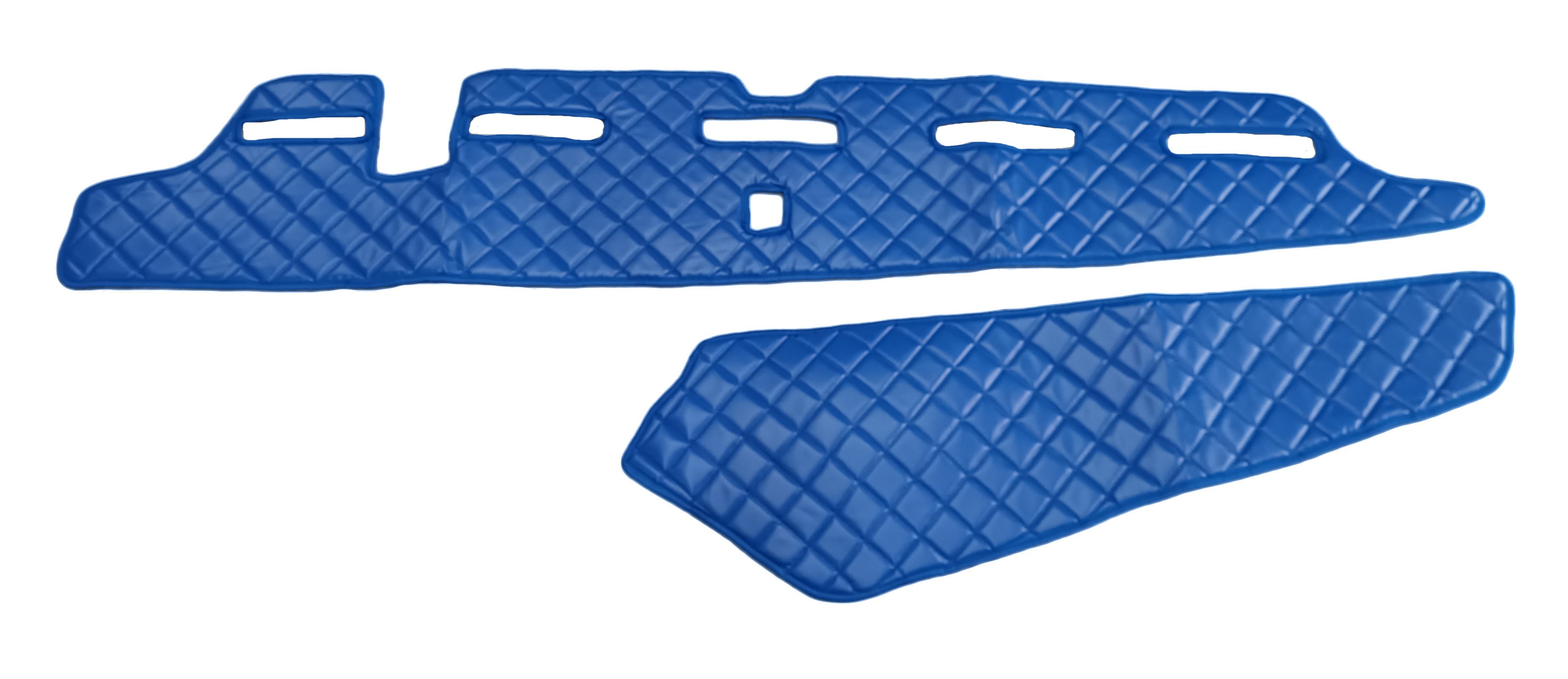 Kožený potah palubní desky VOLVO od 2013 i od 2020 + výřez na kameru, potah palubní desky je vyrobeny z koženky, která je prošitá a tvoří tak čtvercový vzor, pokládá se na originalní palubní desku a tím ji i ochraňuje. Zároveň je to dekorativní potah, díky kterému si můžete interiér doladit do stejné barvy nebo designu jako podlahu či sedadla.