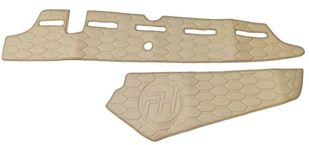 Kožený potah palubní desky VOLVO od 2013 i od 2020 + výřez na kameru, potah palubní desky se pokládá na originalní palubní desku a tím ji i ochraňuje. Zároveň je to dekorativní potah, díky kterému si můžete interiér doladit do stejné barvy nebo designu jako podlahu či sedadla.
