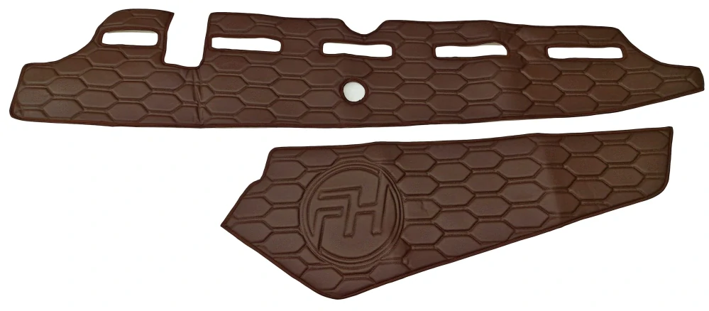 Kožený potah palubní desky VOLVO od 2013 i od 2020 + výřez na kameru, potah palubní desky se pokládá na originalní palubní desku a tím ji i ochraňuje. Zároveň je to dekorativní potah, díky kterému si můžete interiér doladit do stejné barvy nebo designu jako podlahu či sedadla.