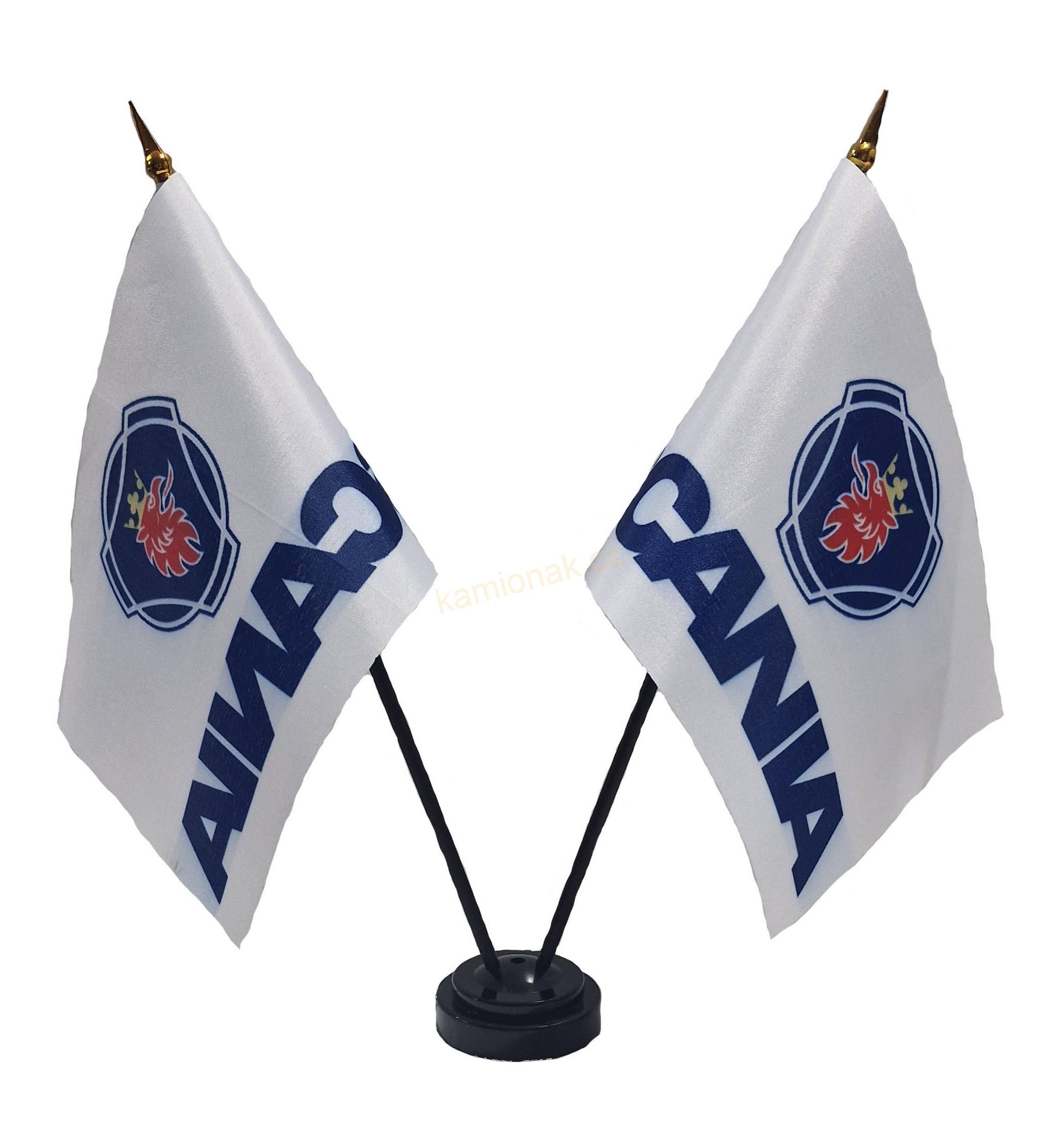 Vlaječky SCANIA/SCANIA - je sada dvou kusů dekorativních vlaječek, dvou kusů ozdobných stožárků a stolního podstavce.