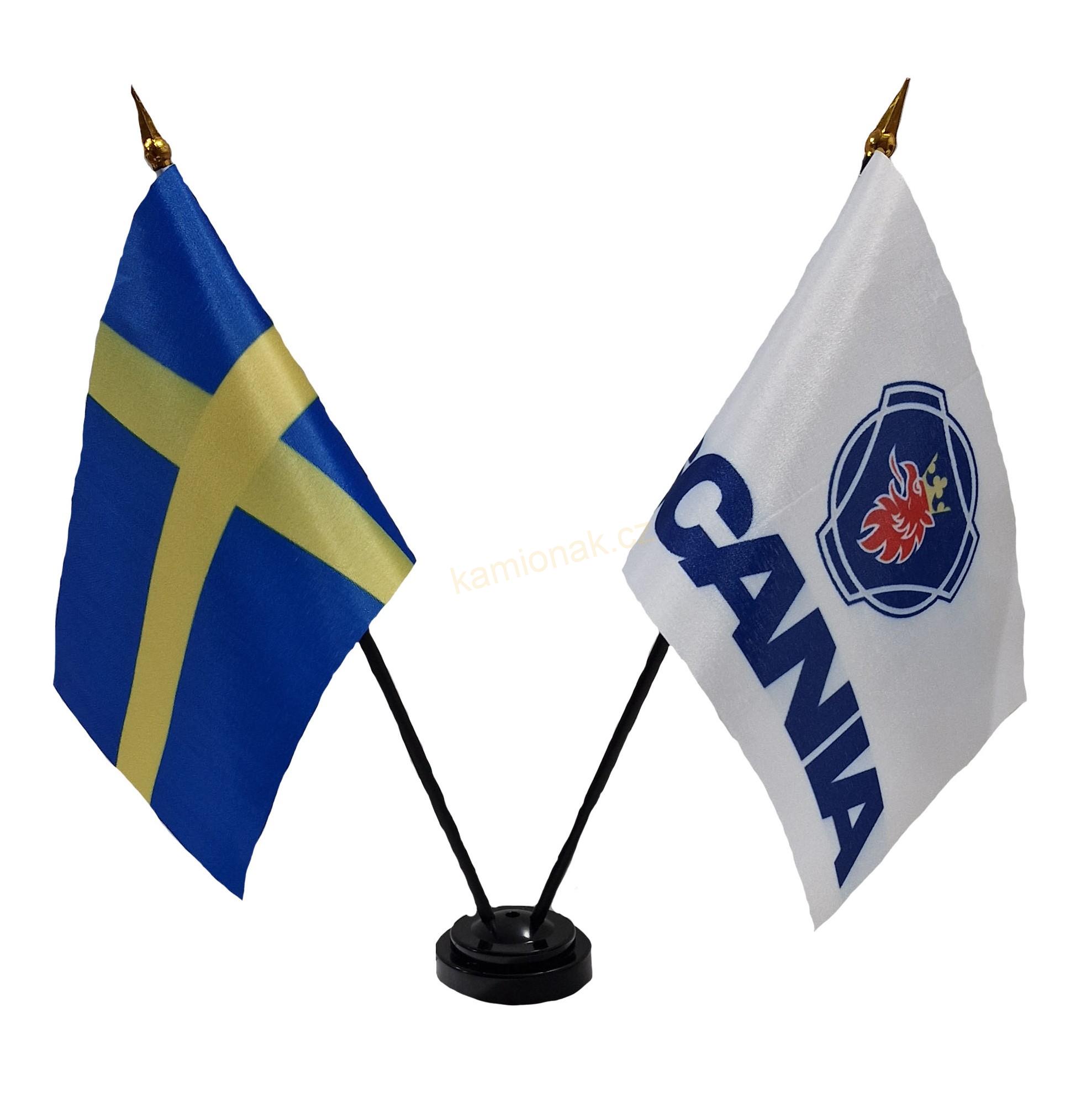 Vlaječky SWEDEN/SCANIA - je sada dvou kusů dekorativních vlaječek, dvou kusů ozdobných stožárků a stolního podstavce.