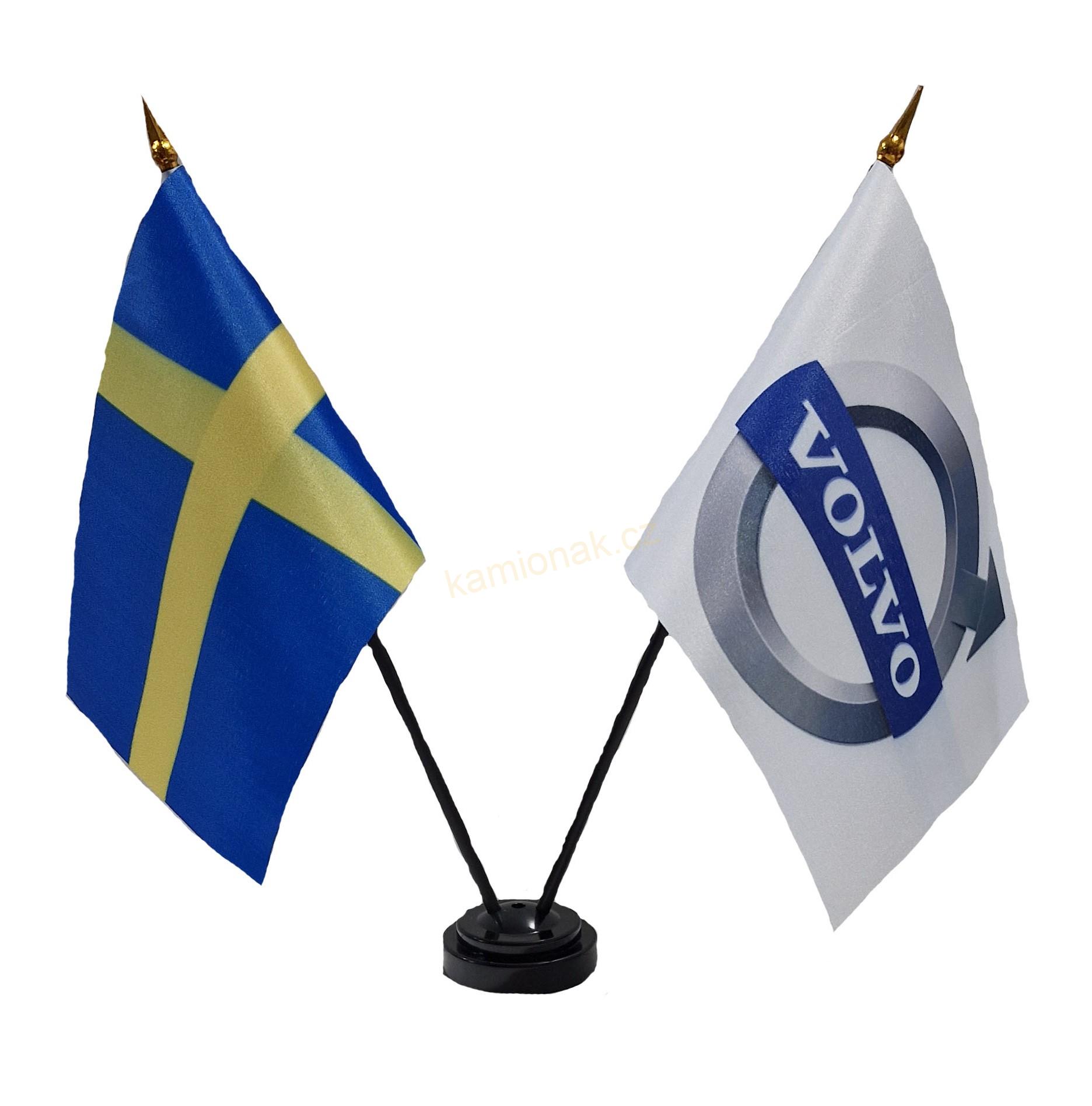 Vlaječky SWEDEN/VOLVO je sada dvou kusů dekorativních vlaječek, dvou kusů ozdobných stožárků a stolního podstavce.