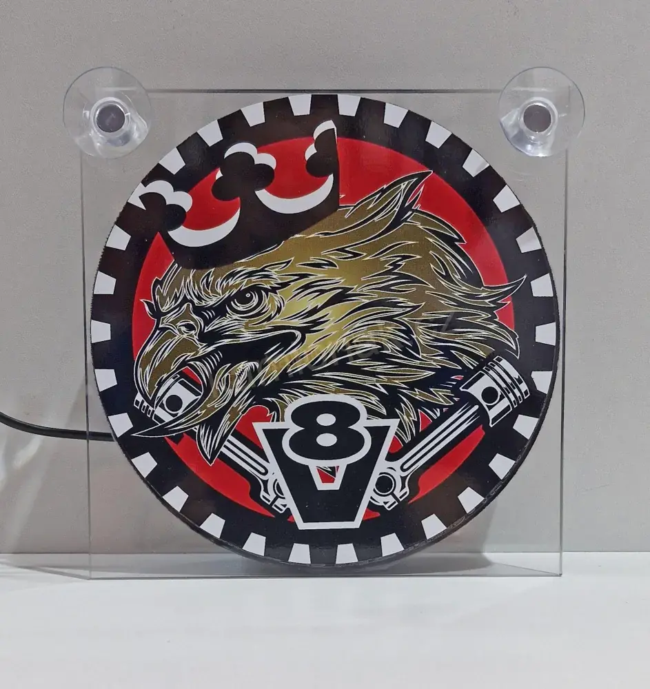 Svítící LED box - EGLE KING OF THE ROAD - je opatřen 2 ks přísavek pro pohodlné připevnění např.na sklo a cca 1m dlouhým kabelem zakončeným zástrčkou do zapalovače s pojistkou.